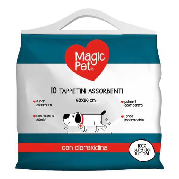 The Magic Pet Hygienic Pad with Chlorhexidine, made of super absorbent cellulose with odor-control polymers, helps capture and eliminate bad smells. Adhesive stickers allow the pad to be fixed securely and conveniently to the floor.