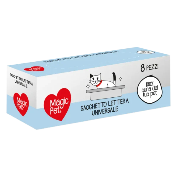 Il Sacchetto per Lettiera Universale di Magic Pet è un sacchetto igienico usa e getta per lettiera, formato 85x38 cm. Sacchetti con maniglie, pratici e resistenti per la toilette del gatto. I sacchetti igienici per lettiera Magic Pet facilitano la pulizia della vaschetta e sono super resistenti e pratici grazie alle comode maniglie che ne facilitano la chiusura ed il trasporto.