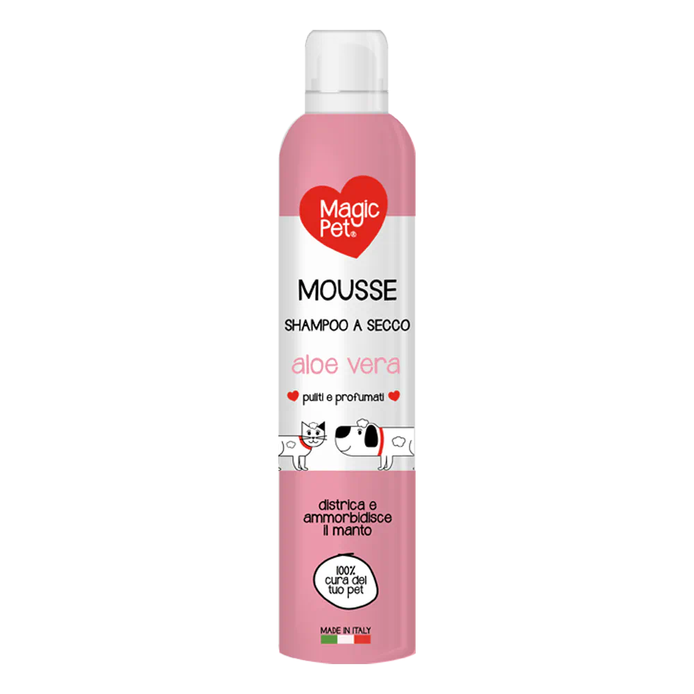 Lo Shampoo Mousse per Cani e Gatti di Magic Pet è ideale per garantire l'igiene quotidiana dei pet anche senza acqua. Deterge a fondo e protegge il manto e la cute, lasciando il pelo morbido e profumato a lungo. Dopo il lavaggio il pelo resta a lungo lucente e profumato. È indicato anche per lavaggi frequenti e per tutti i tipi di pelo.