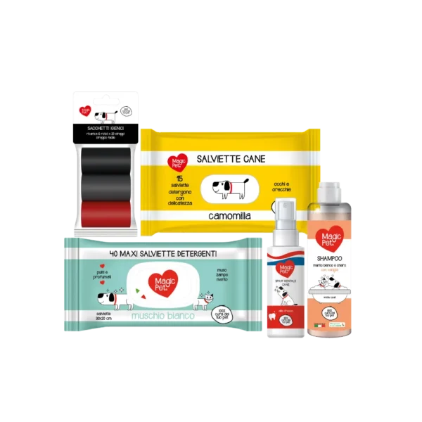 La magia di Magic Pet racchiusa in un kit completo di 5 prodotti perfetti per garantirci igiene profonda, profumazione piacevole e divertimento assicurato.